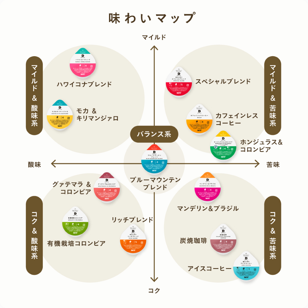 DRIP POD専用カプセルの味わいマップ